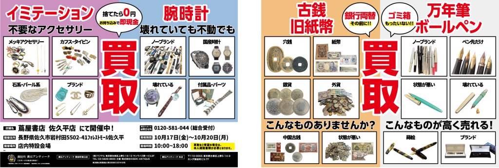 10月17日(金)~20日(月)、佐久平店にて宝石・ブランド品買取フェア開催!