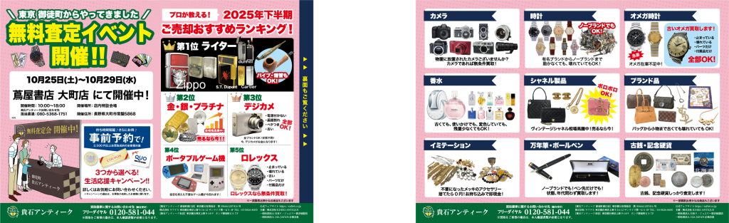 10月25日(土)~29日(水)、大町店にて宝石・ブランド品買取フェア開催!