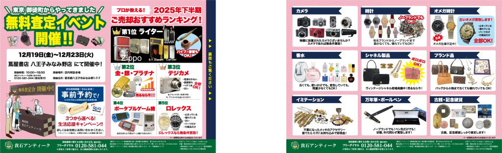 12月19日(金)~23日(火)、八王子みなみ野店にて宝石・ブランド品買取フェア開催!