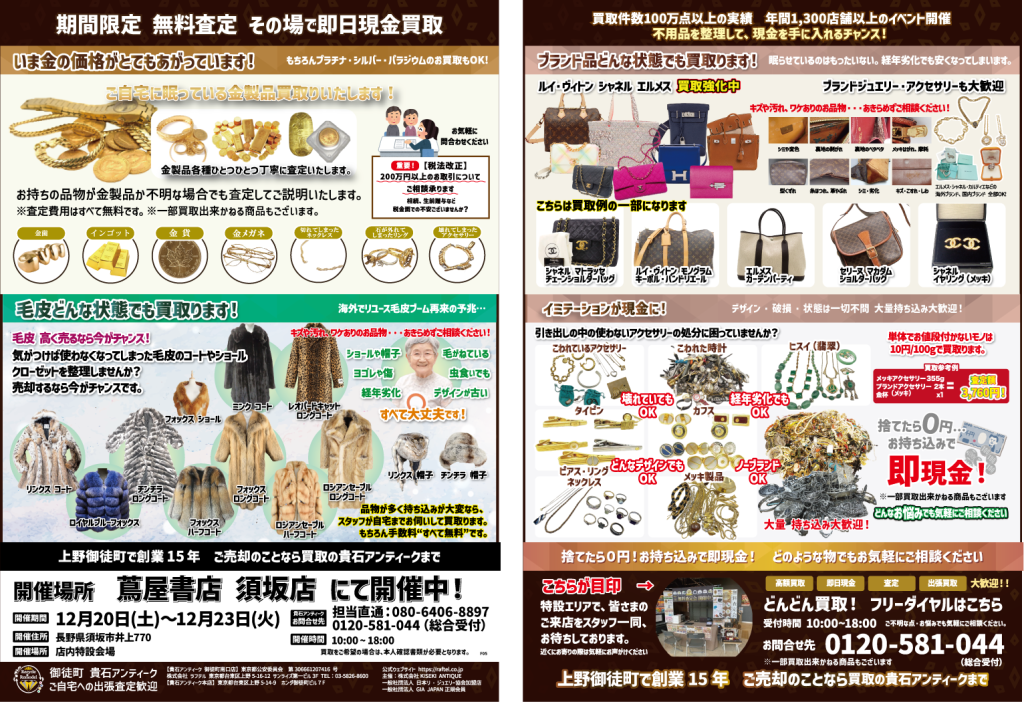 12月20日(土)~23日(火)、須坂店にて宝石・ブランド品買取フェア開催!