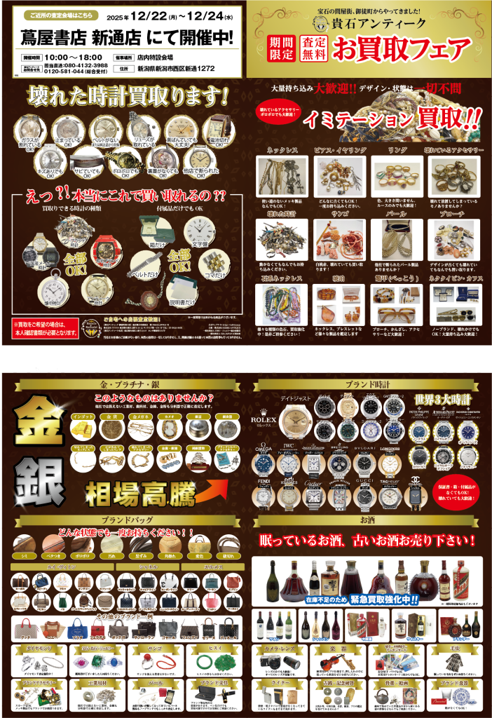 12月22日(月)~24日(水)、新通店にて宝石・ブランド品買取フェア開催!