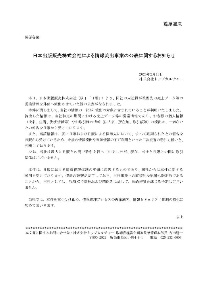 日本出版販売株式会社による情報流出事案の公表に関するお知らせ